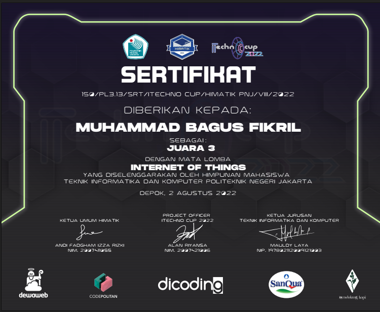 - Juara 3 Lomba Inovasi IoTSource
