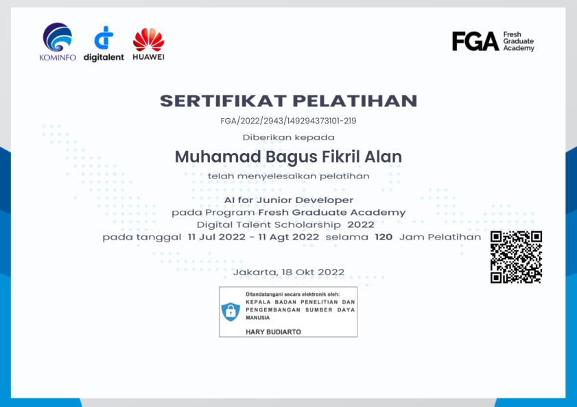 - Fresh Graduate Academy AI For Junior Developer Huawei oleh Kementrian Komunikasi dan Informatika RISource